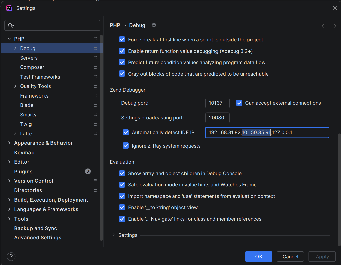 How to detect correct ips? Open PHPStorm debug settings and get it from here